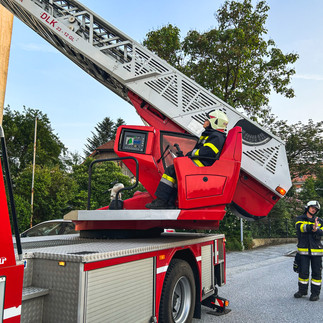 Am Montag, dem 19. Juni führten wir eine Schulung für unsere Drehleiter in einer Kleingruppe durch. Allerdings wurden wir mitten in der Übung von der Polizei telefonisch zu einer Türöffnung im Ortsgebiet alarmiert. Einsatzleiter OBI Marco Adler und ein Kamerad machten sich mit dem MTFA auf den Weg, um den Einsatzort zu erkunden. Die anderen Kameraden und Kameradinnen, die gerade an der DLK-Schulung teilnahmen, machten sich zum Abmarsch fertig und rückten anschließend mit dem LFB-A und der DLK zum Einsatzort nach. Die Drehleiterbesatzung bestand dabei aus drei Kameradinnen, die die DLK in Position brachten, durch ein Fenster in die Wohnung einstiegen und der Polizei die Wohnungstür öffneten. So wurde der fast der gesamte Einsatz von unseren drei Kameradinnen auf der Drehleiter abgearbeitet.